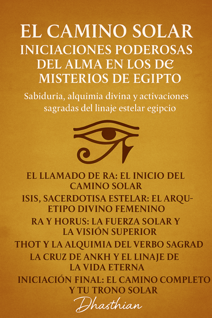 Recorrido iniciático por el linaje solar de Egipto. Activaciones con Ra, Isis, Thot y el Ojo de Horus para despertar la luz divina en tu alma.