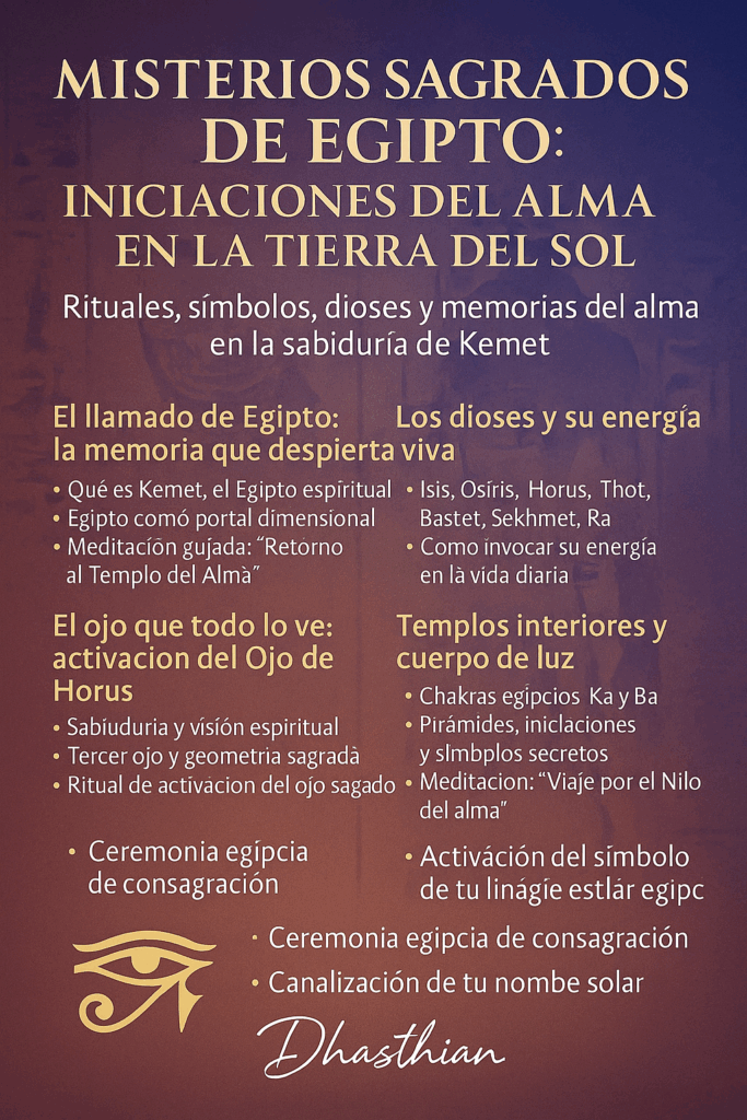 Sumérgete en la sabiduría de Kemet, los rituales iniciáticos de los templos egipcios y las memorias estelares del alma.