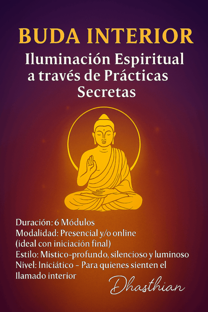 Curso sagrado de iluminación interior a través de prácticas budistas secretas. Una senda profunda, silenciosa y transformadora para despertar tu esencia espiritual y activar el sello interno de sabiduría y compasión.