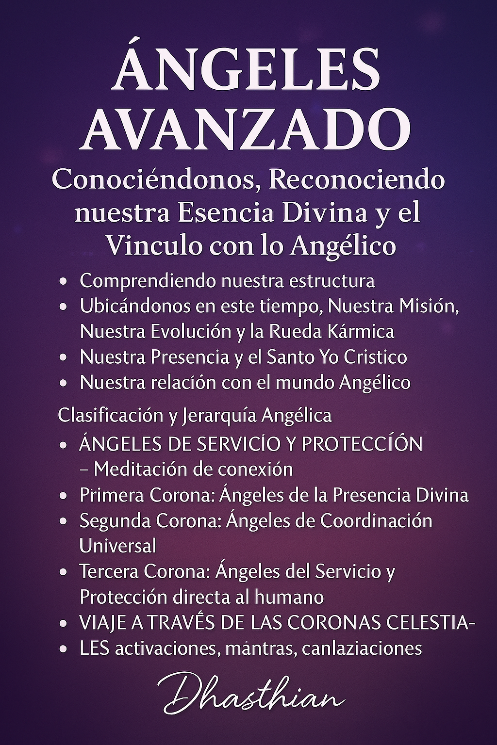 Conectate con las estructuras divinas, tronos celestiales y la verdadera esencia angélica. Un curso revelador, iniciático y lleno de sabiduría celestial.